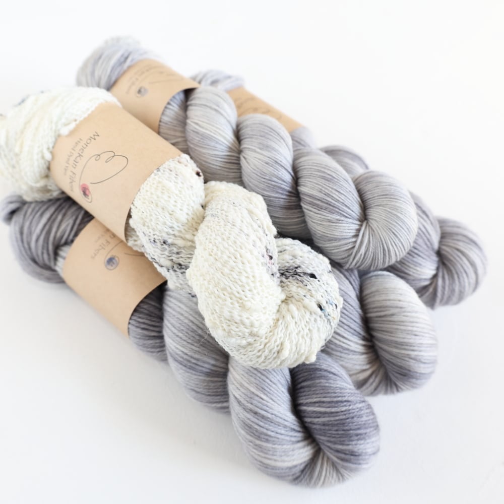 Midori HiroseさんデザインのWhite Mountains Light ( 参考サイズ:こども4〜M1)のキットです。