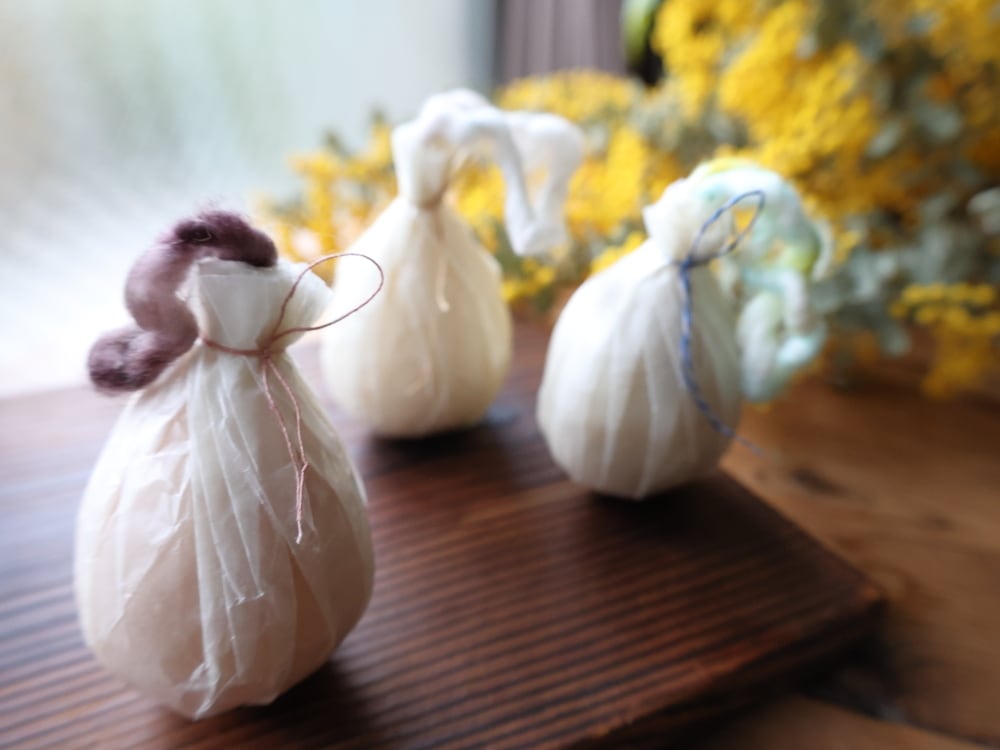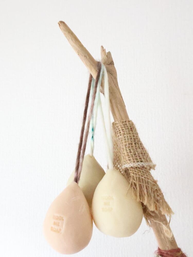 ⒌”WOOL ME SOAP"を吊るして乾燥させてから、保管する。